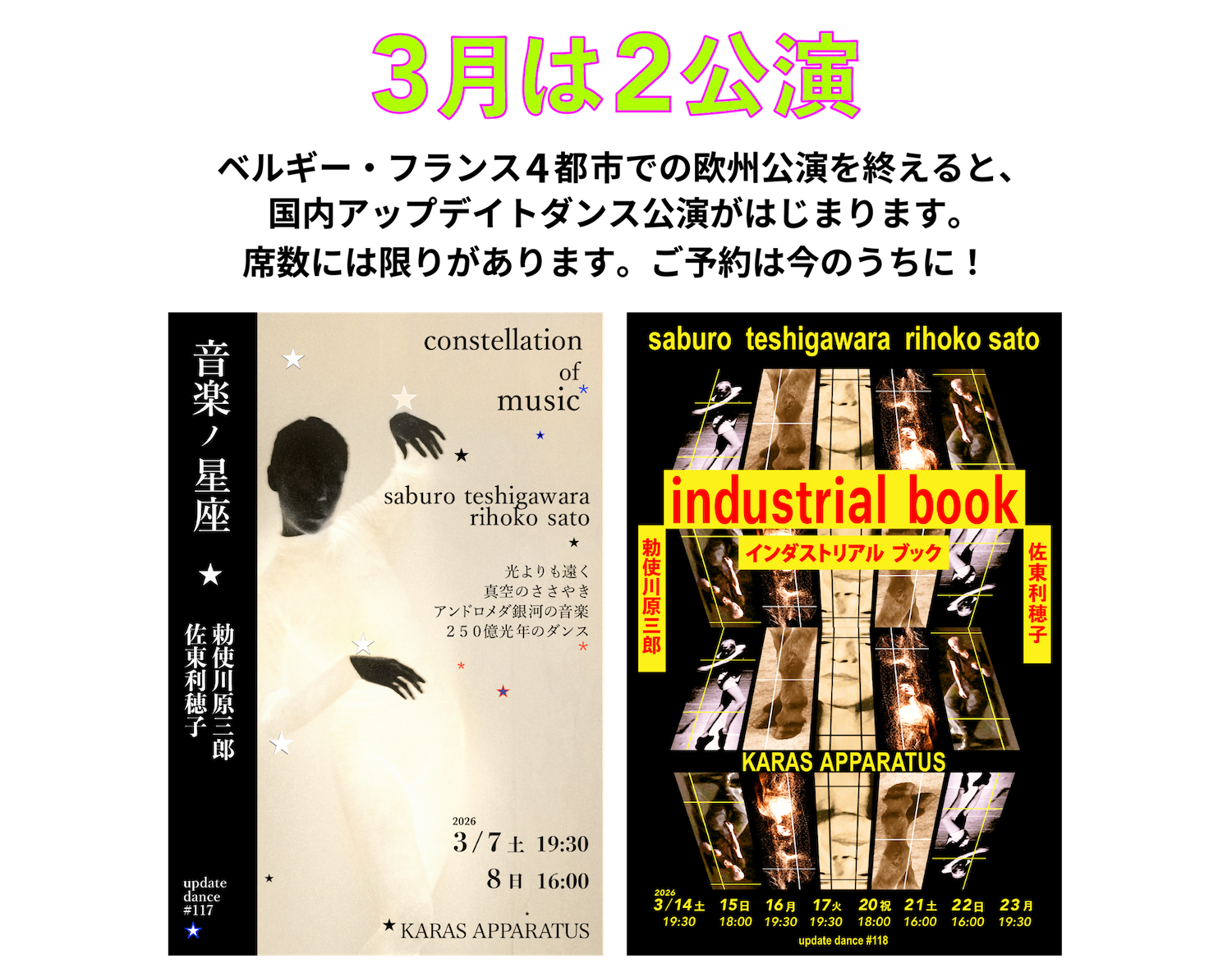 勅使川原三郎と佐東利穂子が揃って出演する3月の新作「インダストリアル ブック」はご予約受付中。皆様のご来場をお待ちしています。