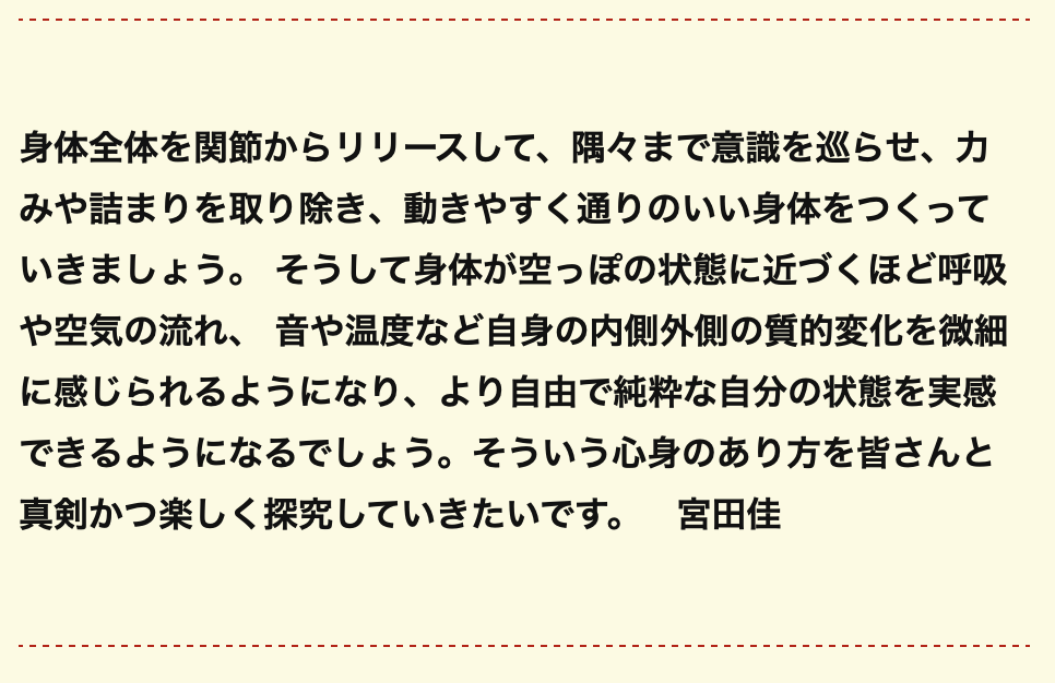 勅使川原三郎と共にKARASを設立した宮田佳による特別ダンスワークショップを、